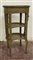Etagere di forma sagomata in legno laccato con ripiani a giorno in paglia di Vienna, decorata a scanalature e fregi floreali intagliati. Piano con ricamo floreale (cm 43x82x38) (difetti)