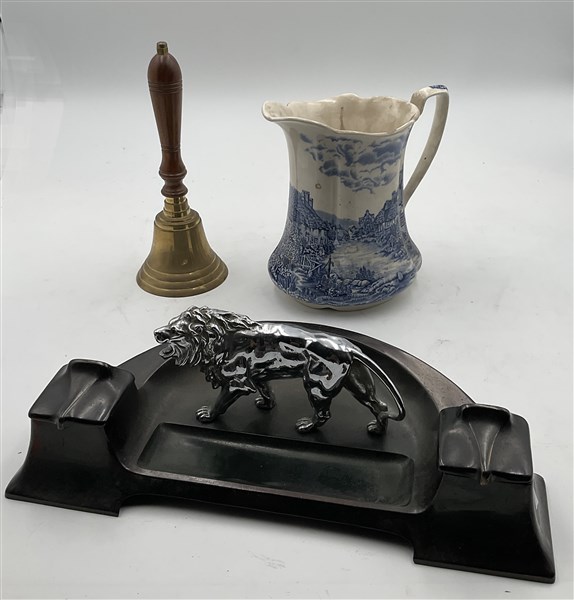 Lotto composto da un calamaio, un campanello ed una brocca in ceramica e materi