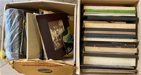 Due cartoni contenenti numerosi dischi di musica classica e fascicoli inerenti la musica