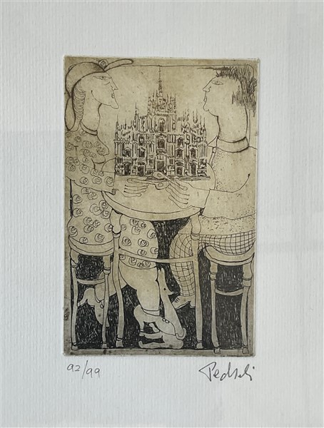 Pedrali "Dessert" acquaforte (foglio cm 23,5x16) firmato e numerato 92/99 in bas