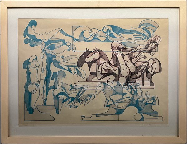 "Senza titolo" 1977, litografia a colori (cm 47x65) firmata, datata e numerata 48/80 in basso a matita