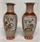 Coppia di vasi in porcellana decorati nei toni dell'arancio con riserve con ram