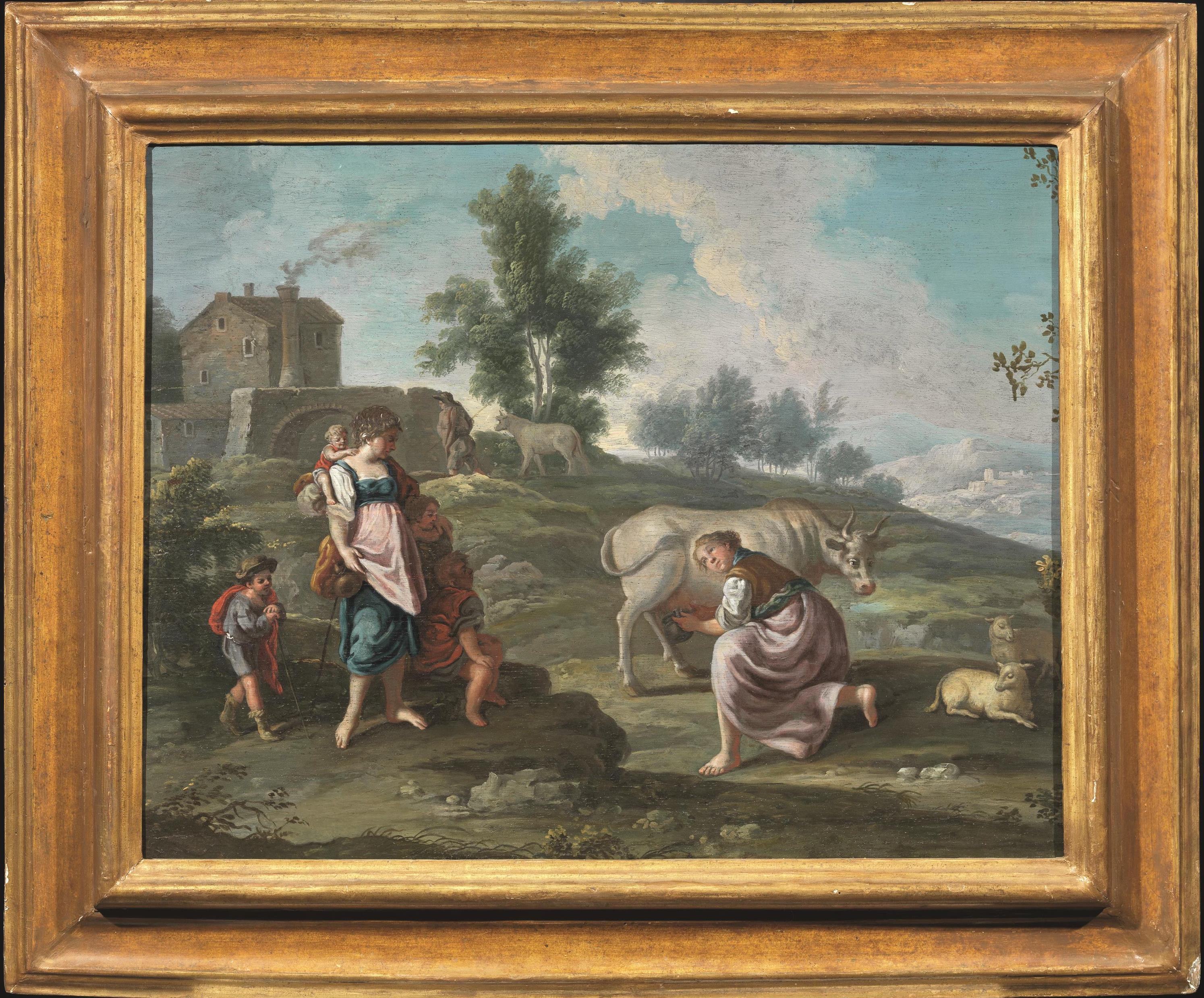 Il dipinto si ispira alle composizioni del pittore veneto Francesco Zuccarelli (Pitigliano 1702-Firenze 1788) e a quelle di Giuseppe Zais (Forno di Canale 1709-Treviso 1784).