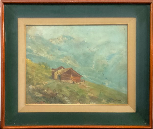 Lotto 3665 | A. Cassani "Baita di montana" olio su compensato (cm 40x50) Firmato in basso a d