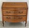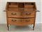 Ribalta filettata in legni vari con fronte di forma mossa a due cassetti e anta ribaltabile celante vani e cassettini (cm 100x102x52) (difetti)