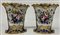 Manifattura francese, coppia di vasi decorati in policromia a volti maschili e