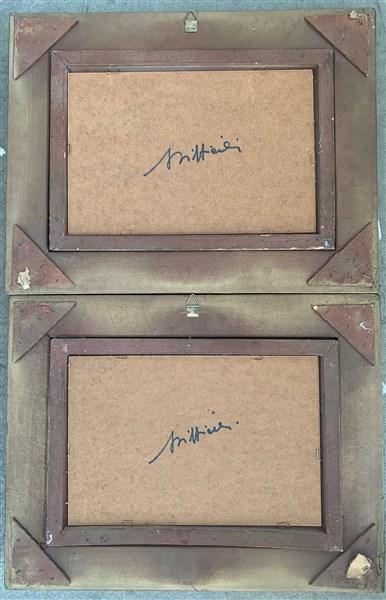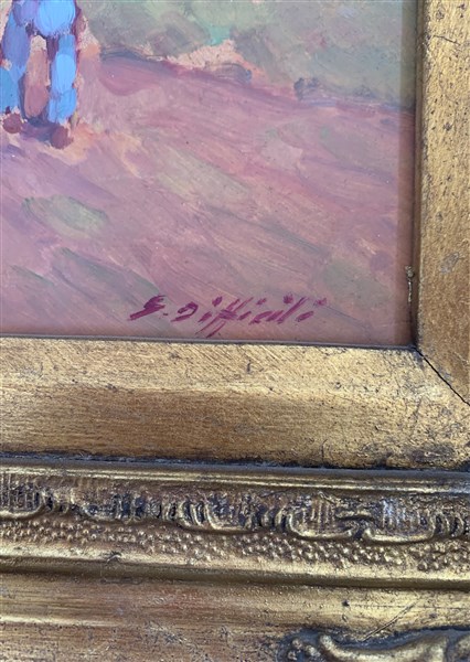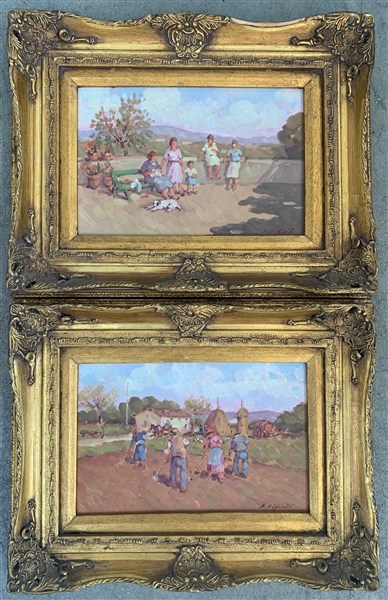 Sergio Difficili Coppia di dipinti ad olio su masonite raffiguranti "Contadini"