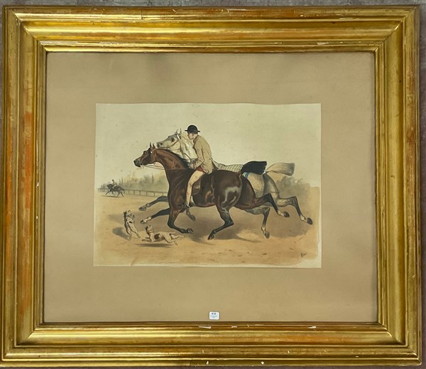 Incisore ignoto del secolo XIX, "All'ippodromo" litografia colorata, firmata in basso a destra (cm 36x52) in cornice