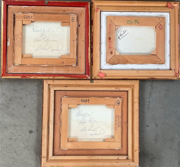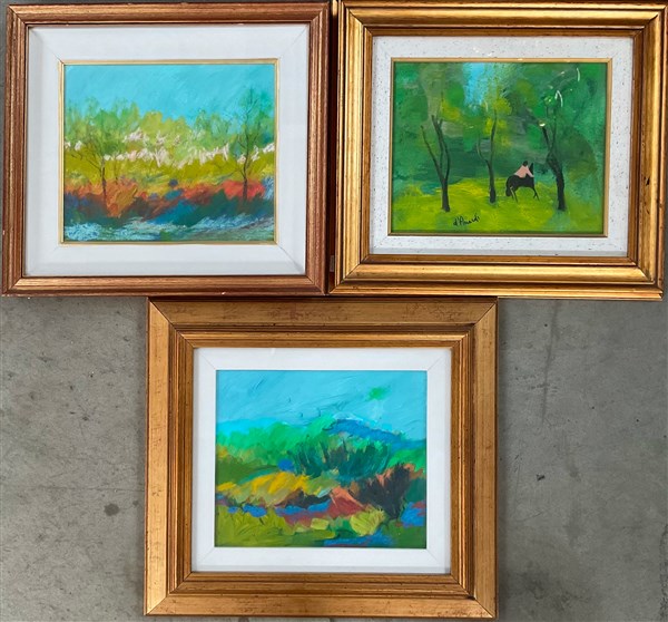 Lotto composto da tre dipinti ad olio su tela raffiguranti paesaggi (cm 25x30 e cm 24x30) uno firmato al fronte, tutti firmati al verso.