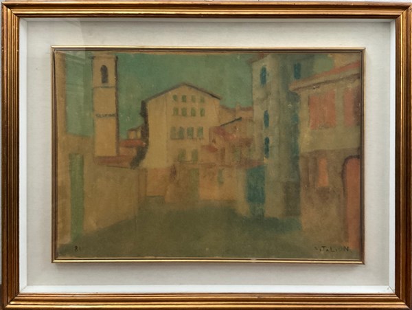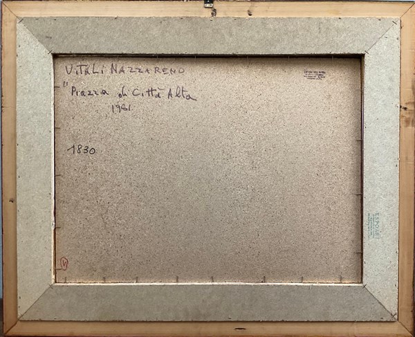 Nazzareno Vitali "Piazza di città alta"1981, tecnica mista su carta applicata su