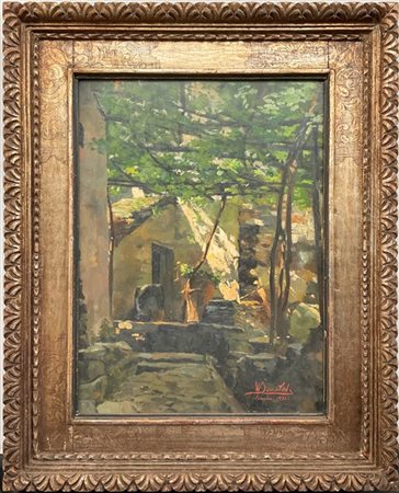 "Casa in un paesaggio" 1931, olio su compensato (cm 60x45) Firmato, datato e locato in basso a destra. Al retro: locato Cannobbio Lago Maggiore e datato. In cornice