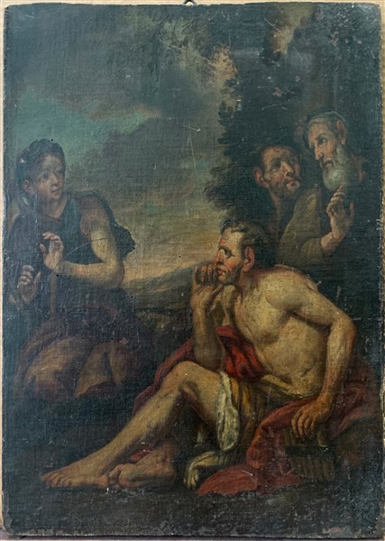 Ignoto "Scena mitologica" antico dipinto ad olio tela applicata su tavola (cm 48,5x36)