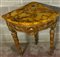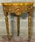 Consolle ad angolo in legno e pastiglia dorato, fronte decorato da mascheroni e