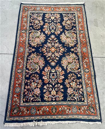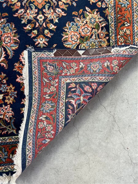 Tappeto Keshan, Persia, secolo XX. Decoro floreale all over policromo su fondo blu notte (cm 172x107) (difetti)