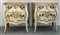 Coppia di comodini di forma mossa in legno laccato a fiori e volute fogliate di