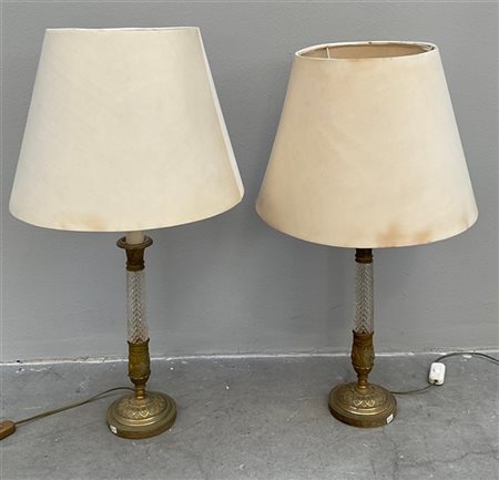 Coppia di candelieri in cristallo e bronzo (cm h 42) (difetti)