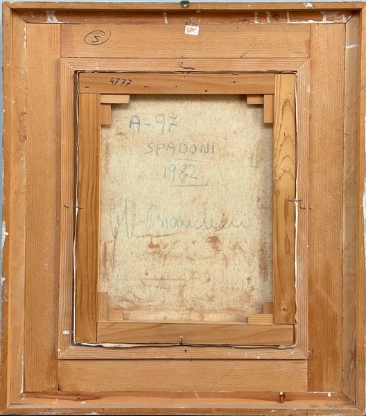 "Spadoni" olio su tela (cm 45x35) firmato in basso a destra; titolato, firmato e datato al verso