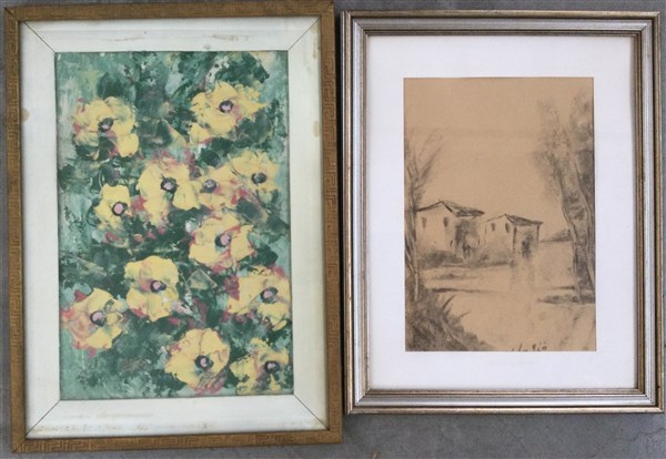 Lotto composto da un olio su tavola, un disegno a matita e una tecnica mista su