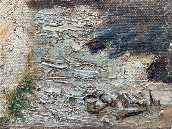 Giuseppe Solenghi "Scorcio di paese" olio su tela (cm 45x64) Firmato in basso a