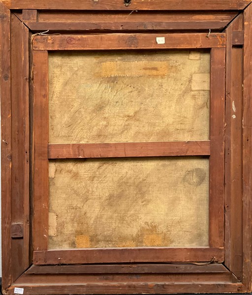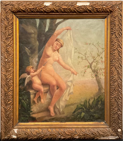 "Venere e Amorino" 11/30, olio su tela (cm 55x46) Firmato e datato in basso a sinistra. Al retro: timbro. In cornice (difetti e restauri)