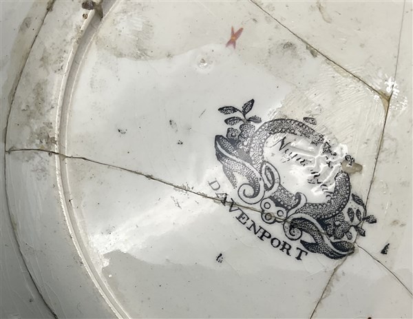Manifatture di Davenport. Parti di servizi in porcellana a fondo rosa con profi