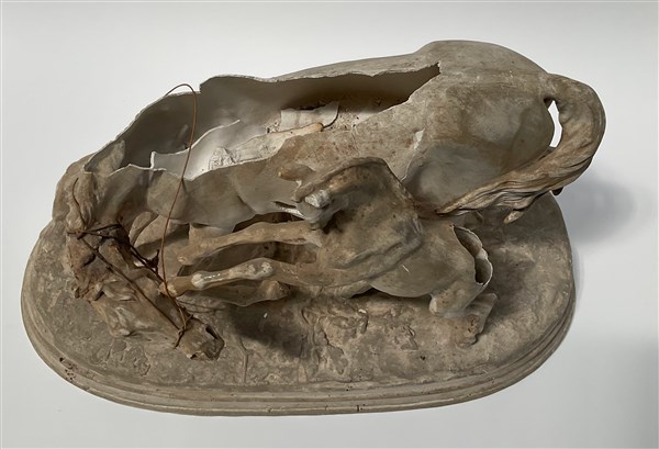 "Cavalla e cavallino" gruppo scultoreo in gesso (cm 50x31x19) (gravi rotture e mancanze)