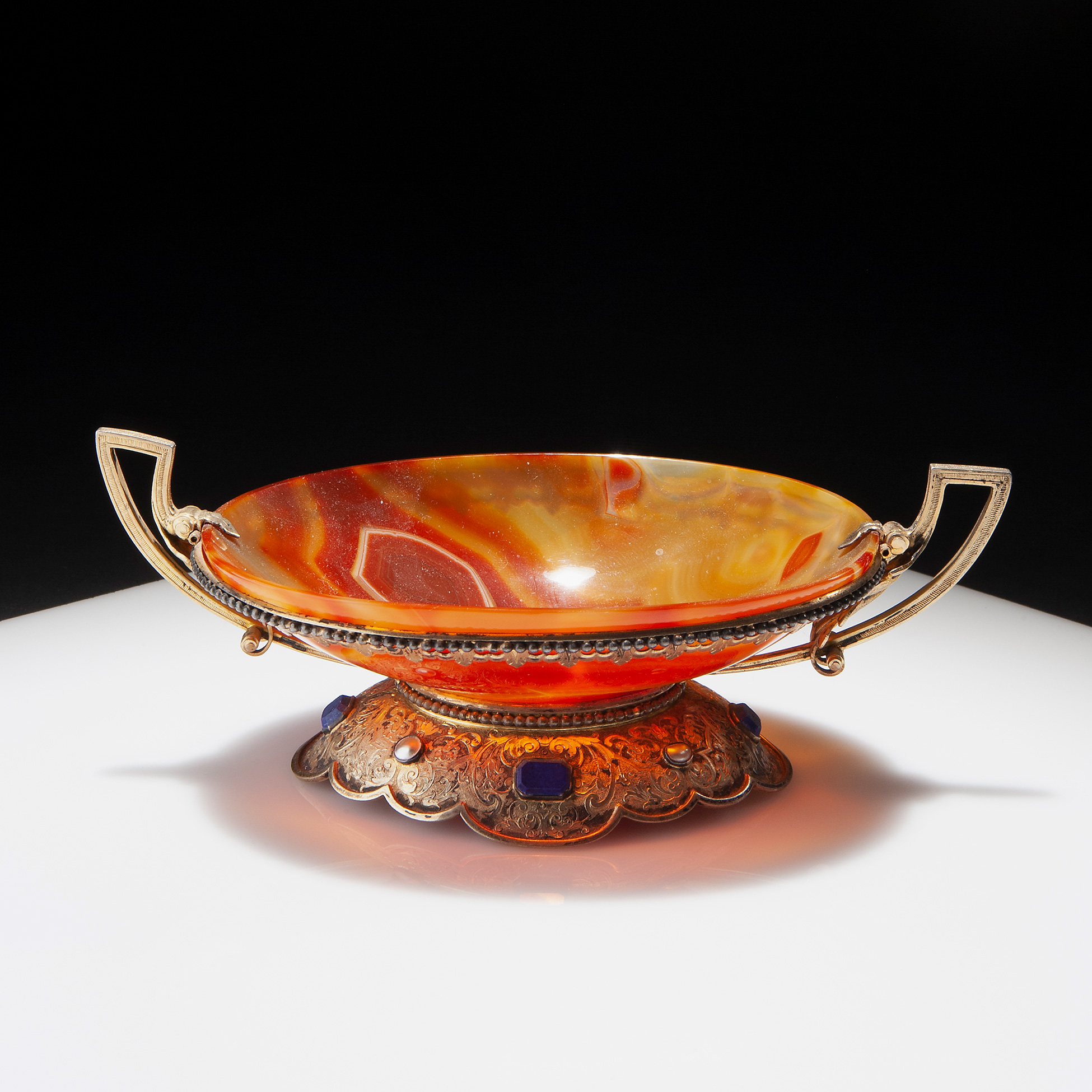 Piccola coppa in corniola e argento dorato, Austria XIX secolo