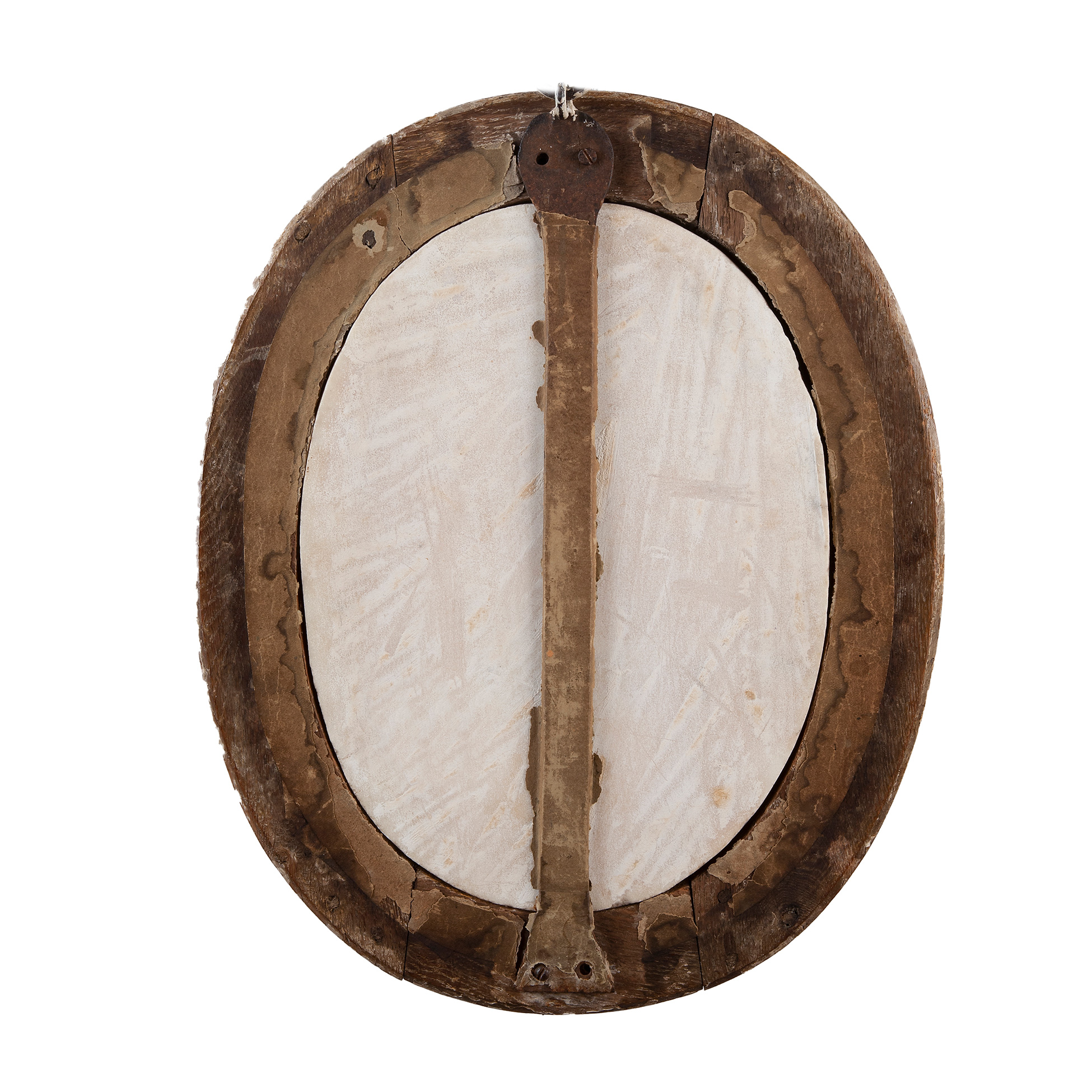 Coppia di bassorilievi in pietra dura con cornice in legno dorato, Roma fine XVII secolo I due volti di profilo raffigurano Gesù e la Vergine Maria. Dimensioni complessive 46x37x5 cm., presenti difetti