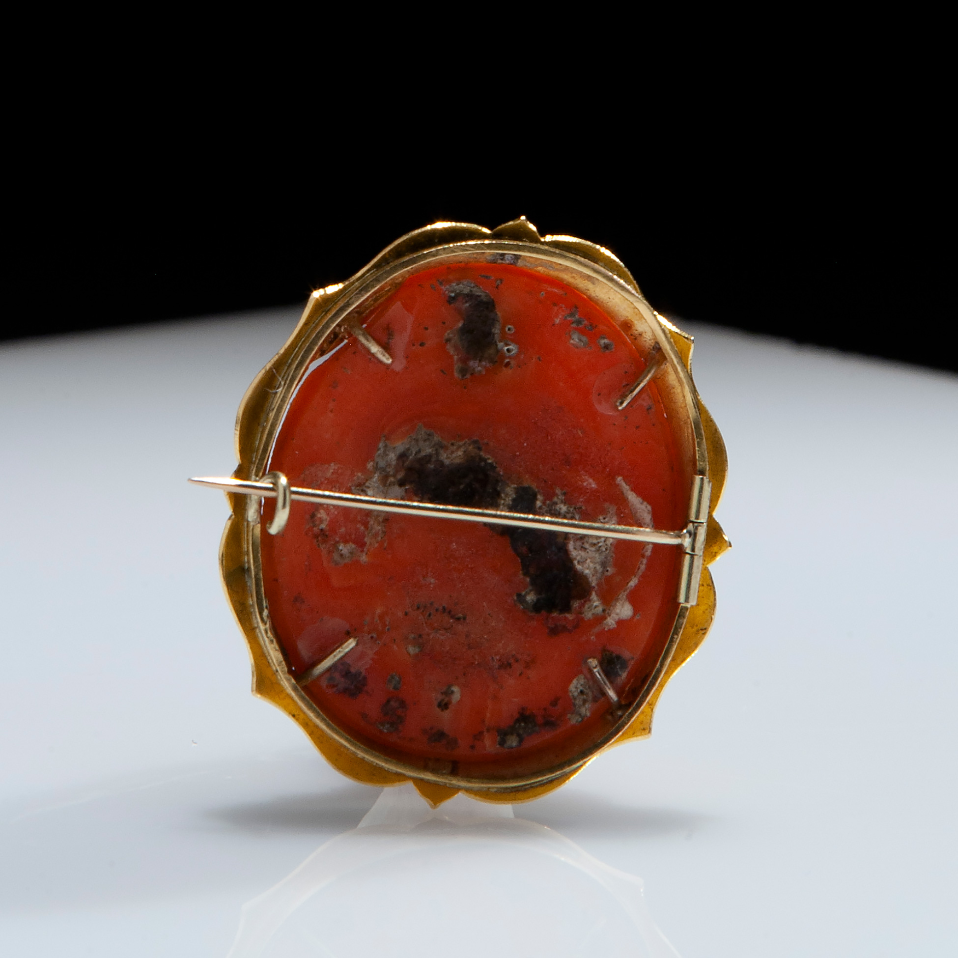 Lotto 40 | Spilla in corallo inciso e oro, Trapani XIX secolo
