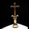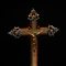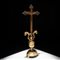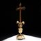 Crocifisso in rame dorato, corallo, argento e smalti, Trapani seconda metà del XVII secolo Basamento circolare con quattro ametiste incastonate, iscrizione latina 'S.l.v.f. Ivssit. In crvce moresis ne crucifigar ego' e due mostri marini. Dimensioni complessive 51,5x15x14 cm., presenti difetti