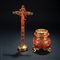 Calamaio con crocifisso in rame dorato e corallo, Trapani prima metà XVII secolo