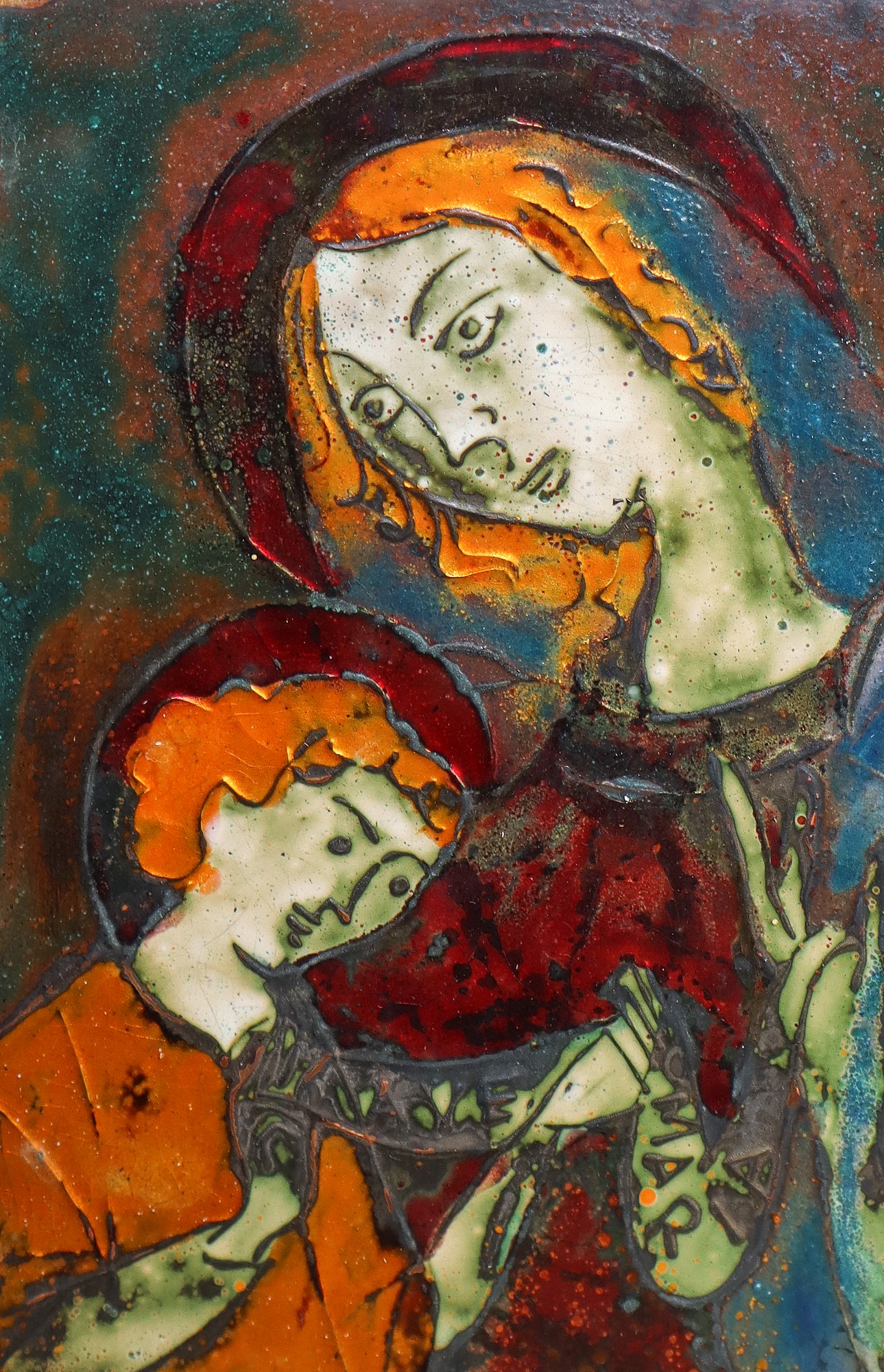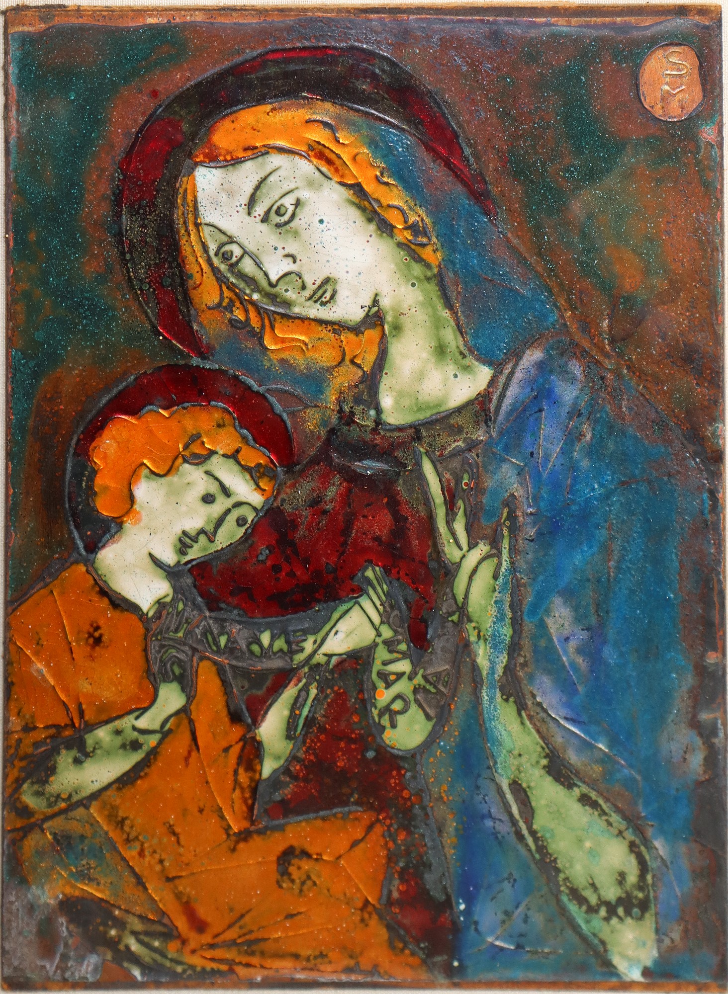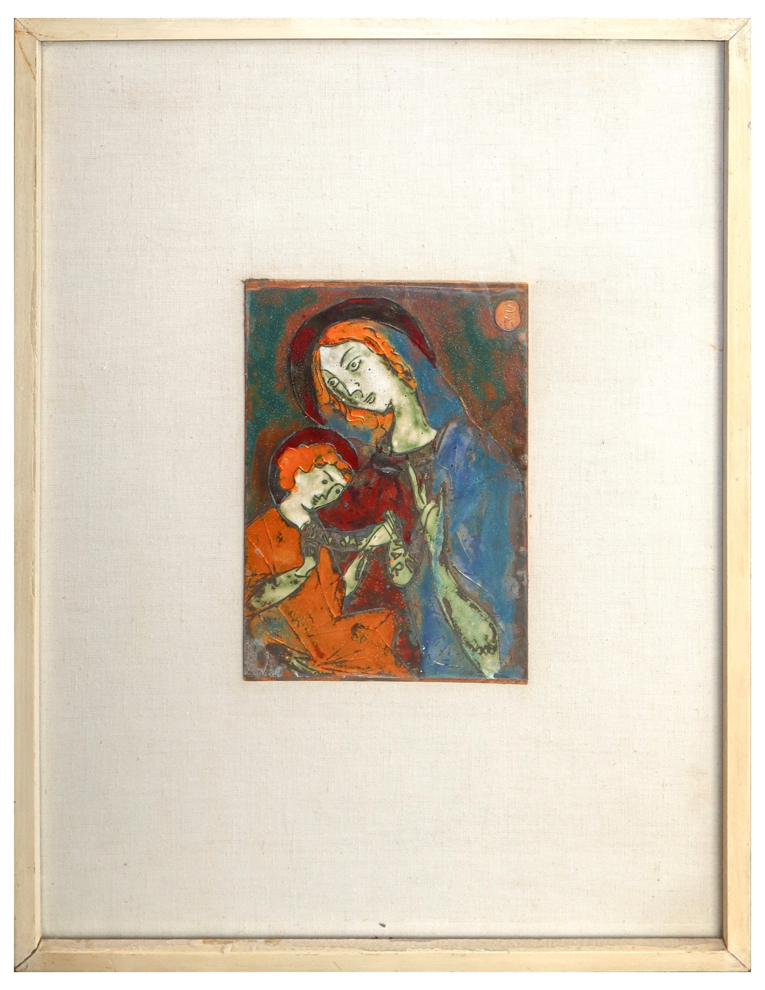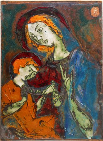 cm 24 x cm 17, in cornice cm 56 x cm 42 Madonna con bambino Smalto su rame