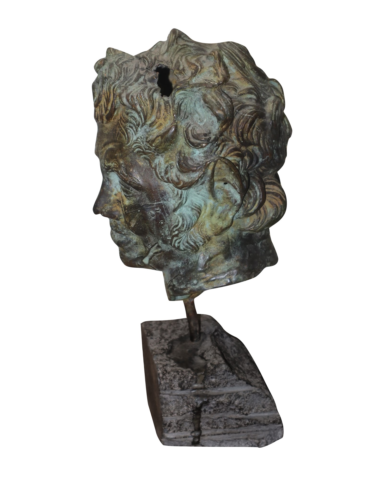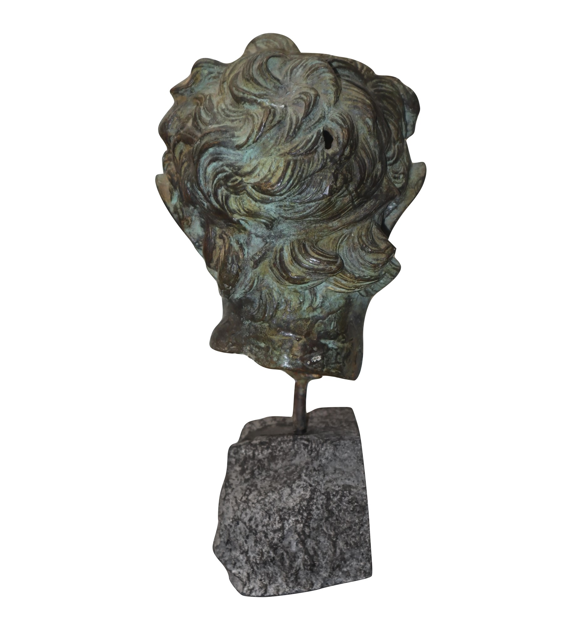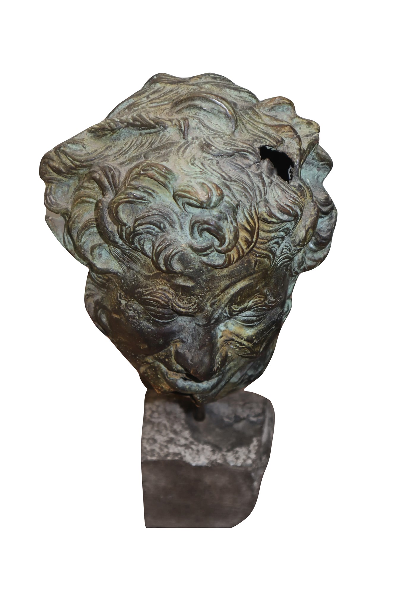 h cm 39 Testa di Satiro Bronzo patinato verde Scultura con base in granito
