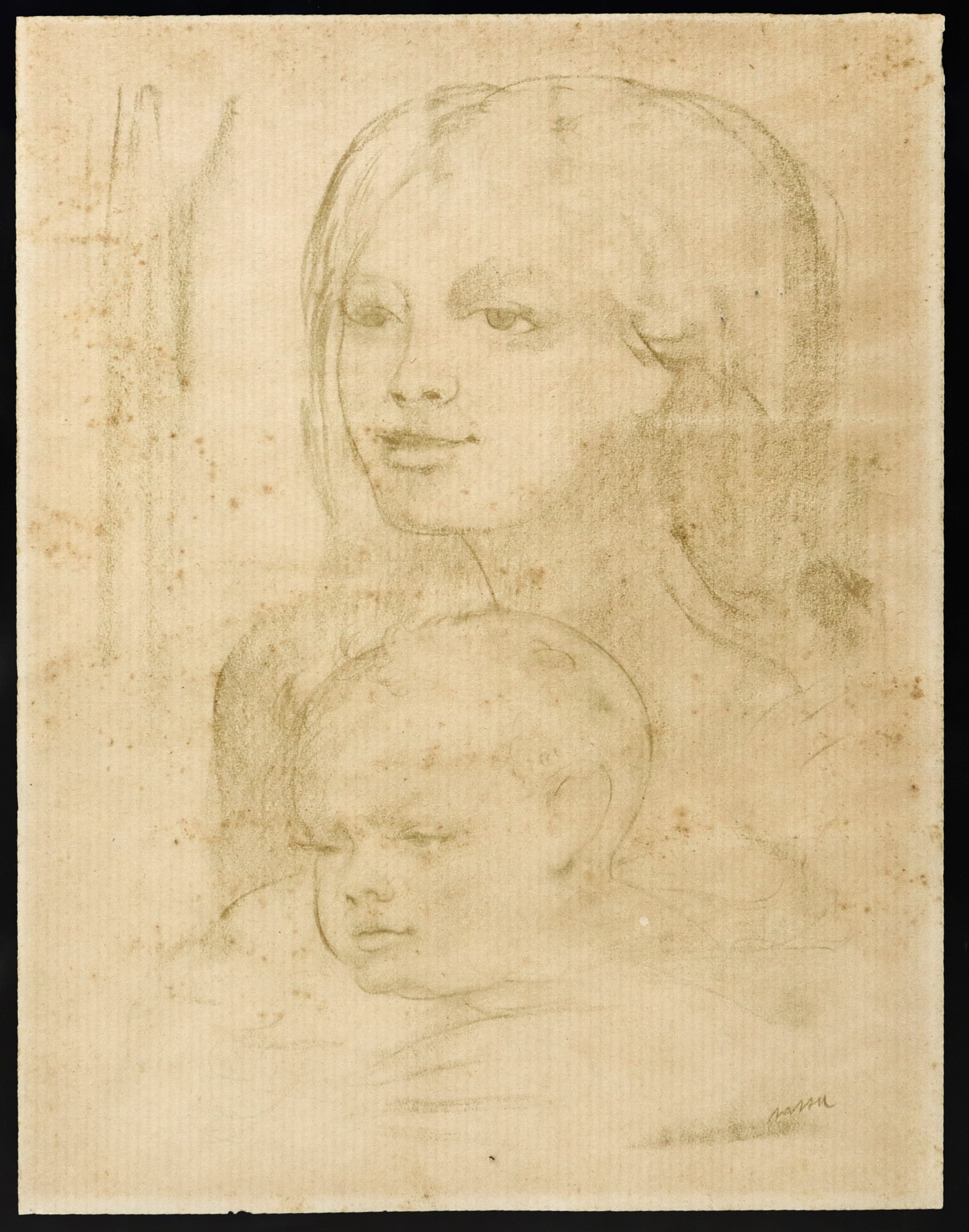 Cm 33x25 Maternità Acquerello monocromo verdaccio su carta Firmato in basso a destra