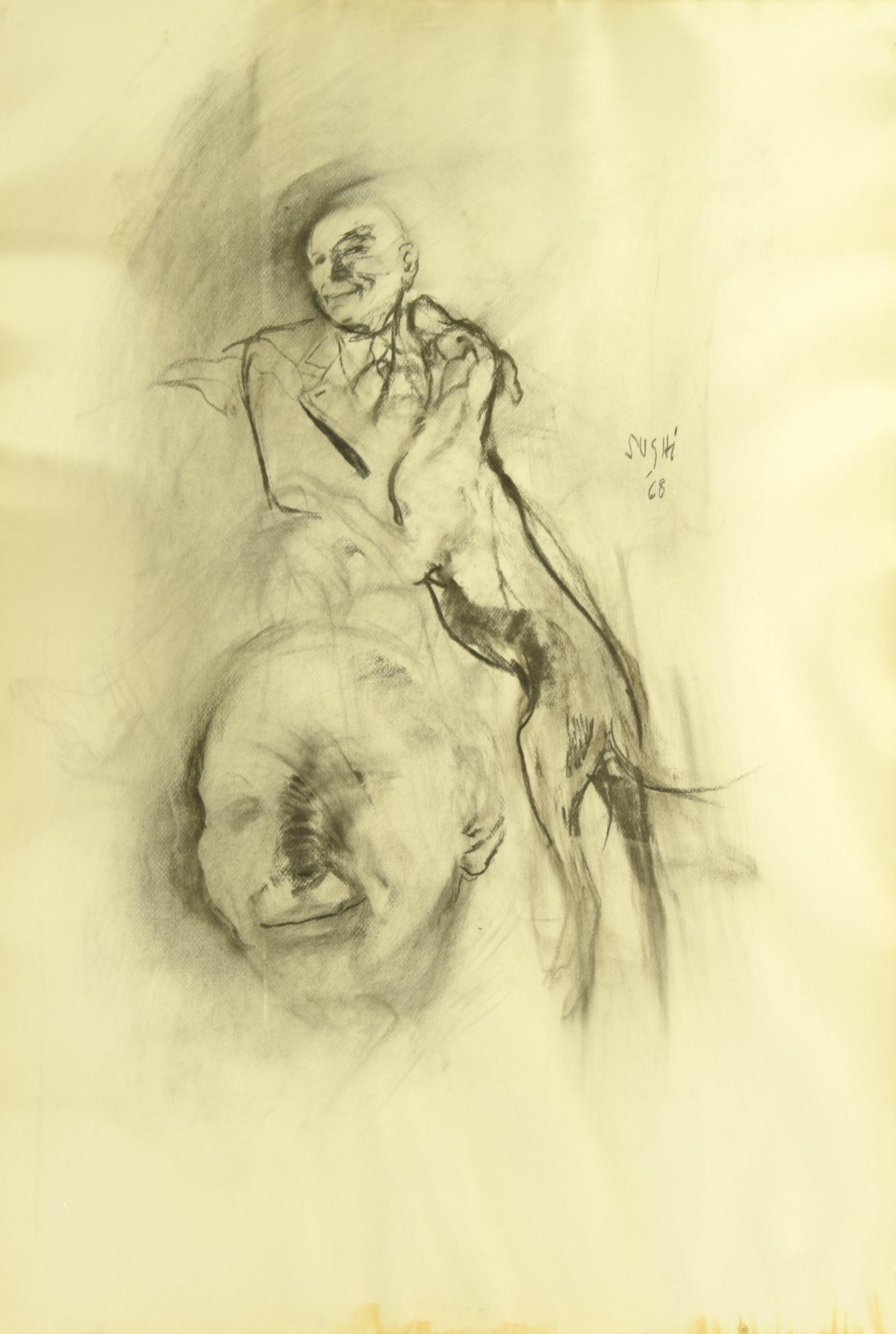 Lotto 12 | Alberto Sughi UOMO CON CANE carboncino su carta, cm 98,5x68 firma e data sul...