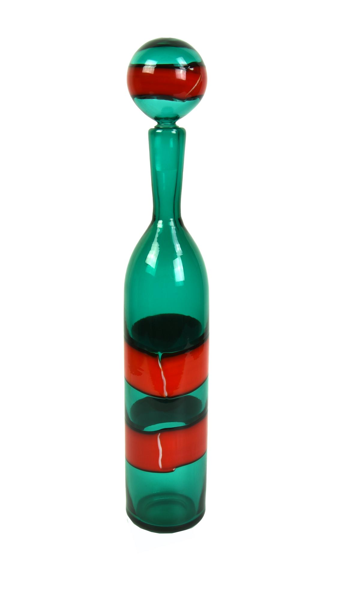 Venini, Murano BOTTIGLIA A FASCE CON TAPPO vetro soffiato e lavorato a mano,...