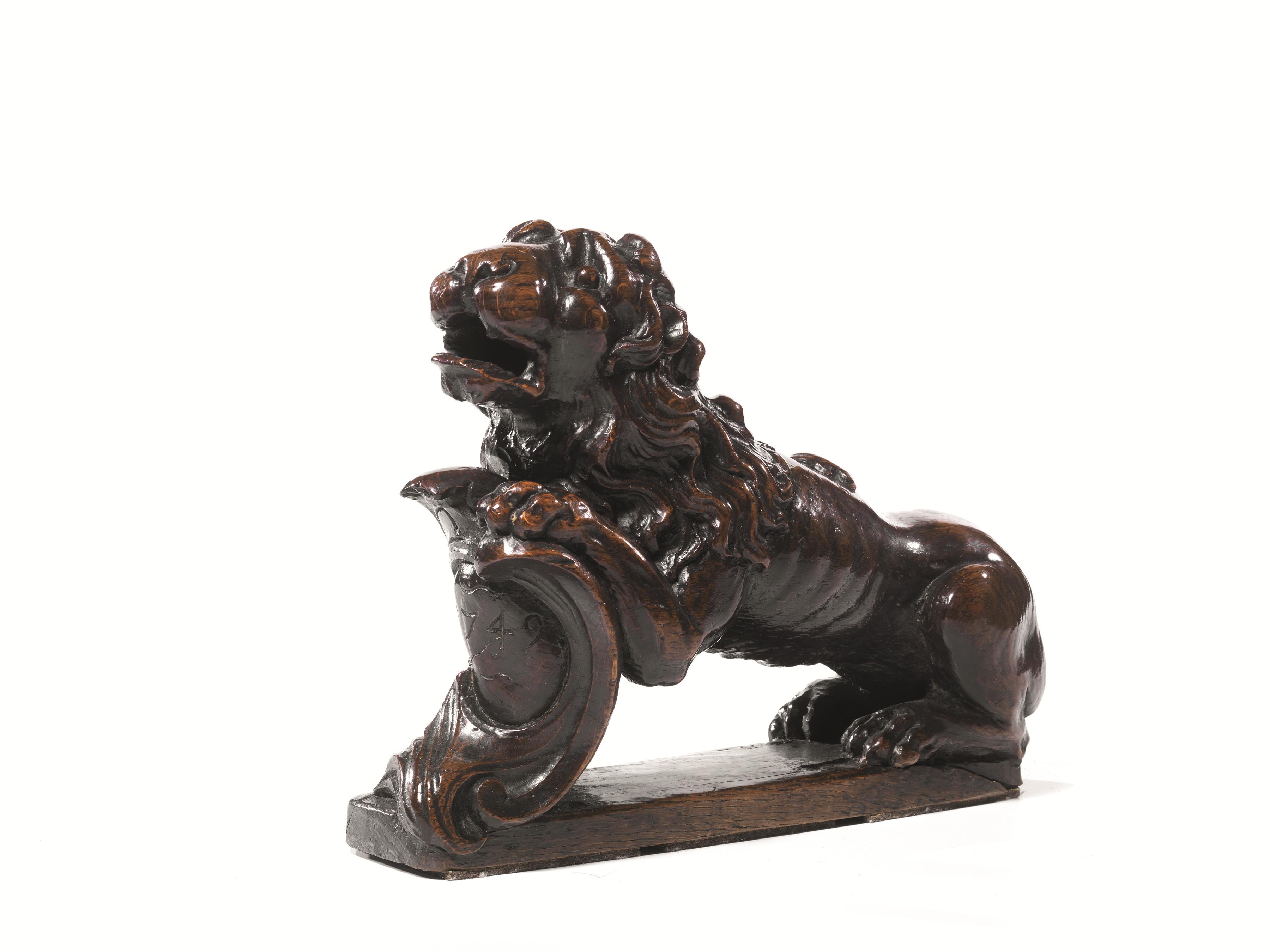 Lotto 208 | Scultura, fine sec. XVIII, in quercia intagliata raffigurante leone...