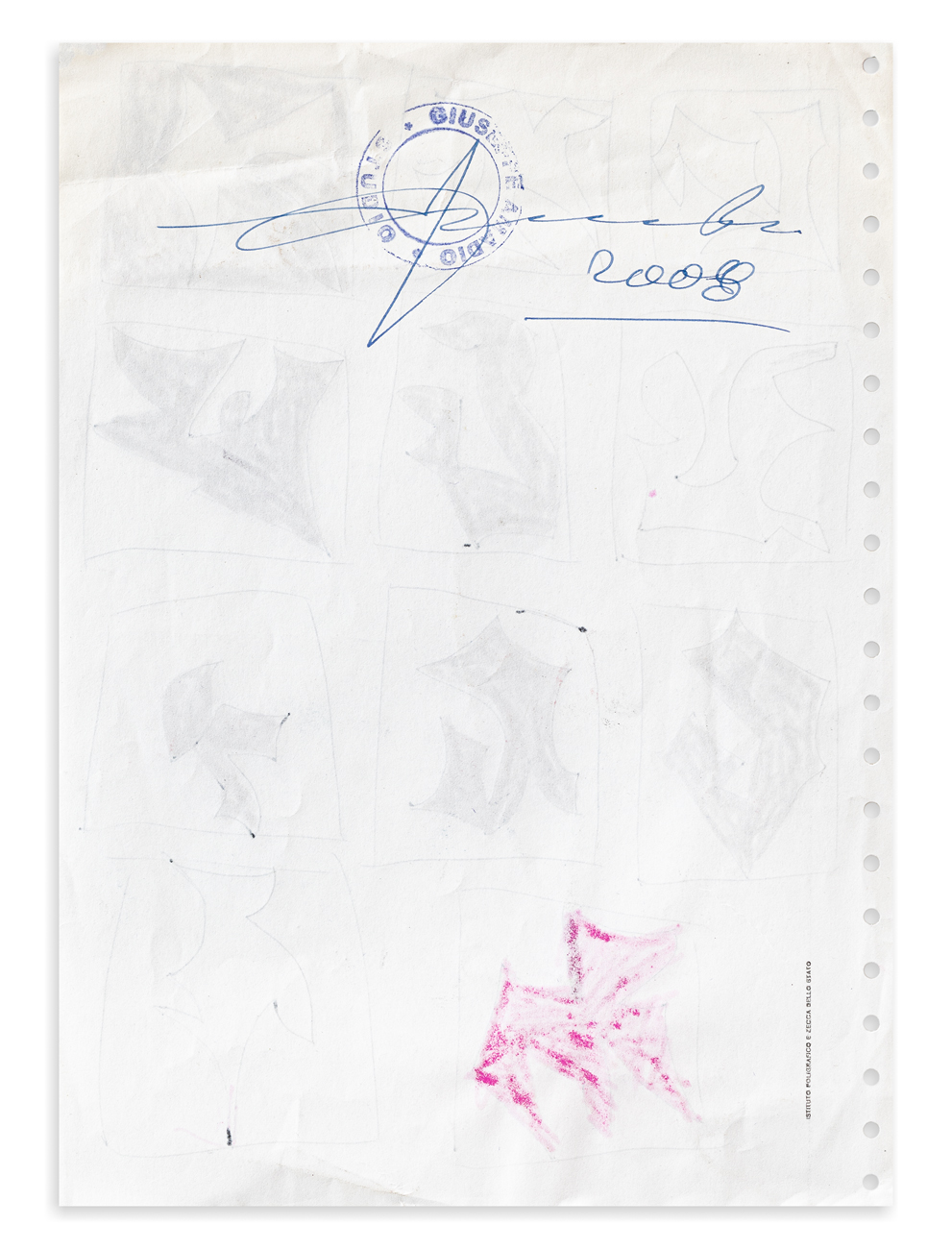 Firma, datazione e timbro dello studio dell'Artista al retro