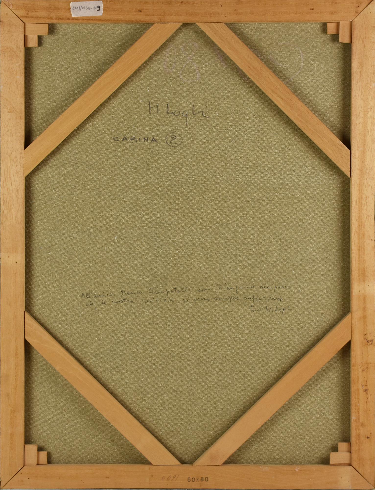 Mario Logli CABINA 2 acrilico su tela, cm 80x60 firma sul retro: firma e...