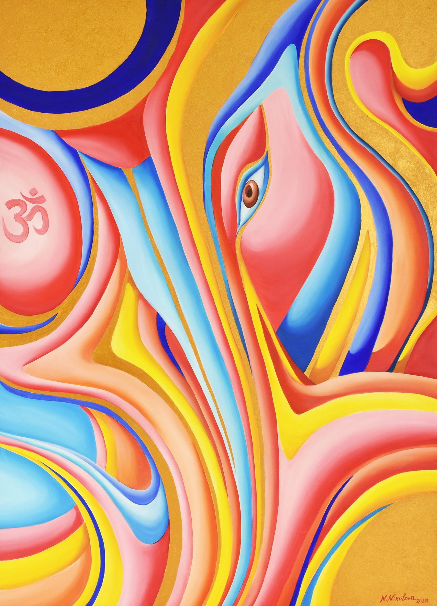 Nikolova Nikolinka GANESHA olio e acrilico su tela, cm 100x70 firma e data...