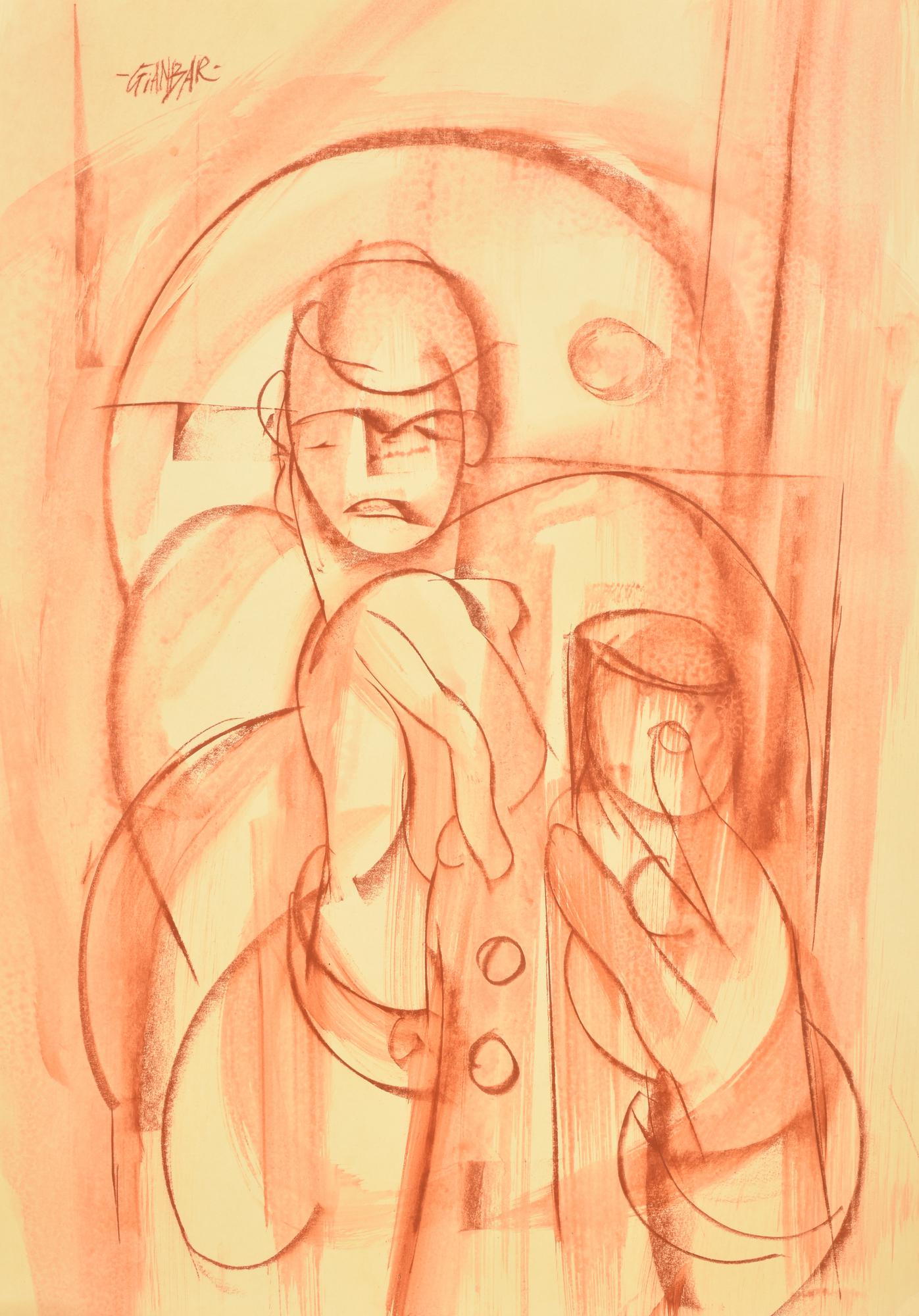 GIANBAR (Gianni Baretta) IL BEVITORE tecnica mista su cartoncino, cm 70x50...