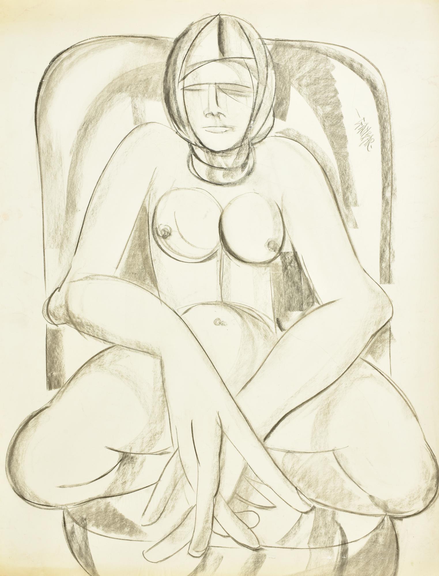 GIANBAR (Gianni Baretta) FIGURA IN VERDE carboncino su carta applicata su...