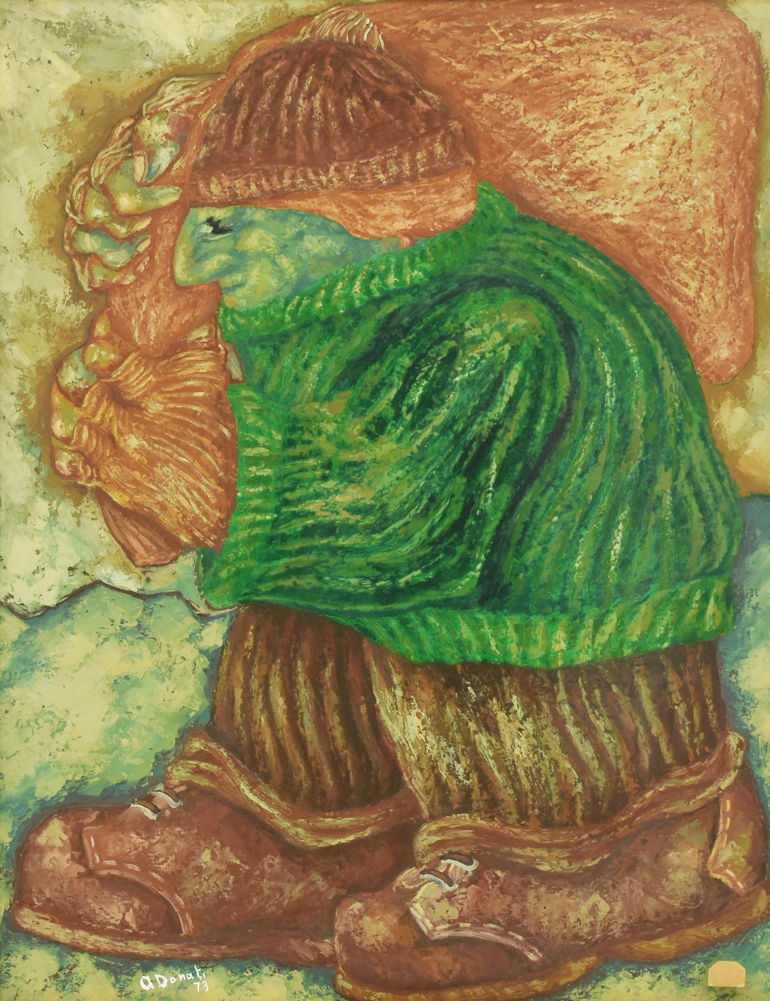 Antonio Donati UOMO CHE CAMMINA tecnica mista su faesite, cm 80x60 firma e...