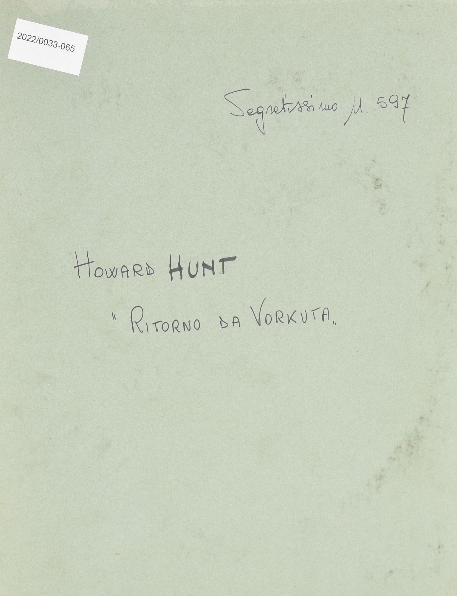 COPERTINA SEGRETISSIMO N. 597 - HOWARD HUNT - RITORNO DA VORKUTA