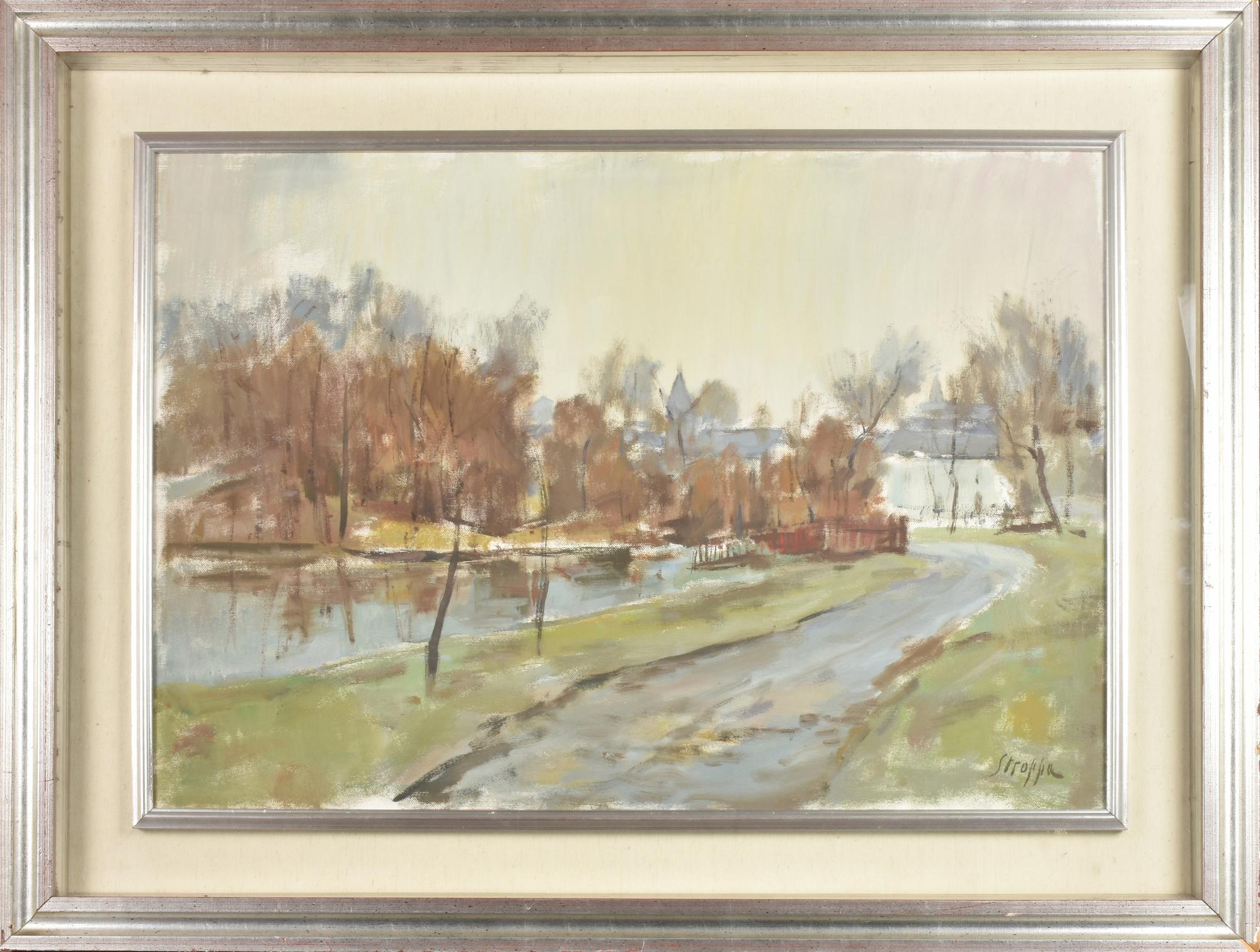 Leonardo Stroppa PAESAGGIO CON FIUME olio su cartone, cm 50x70 firma