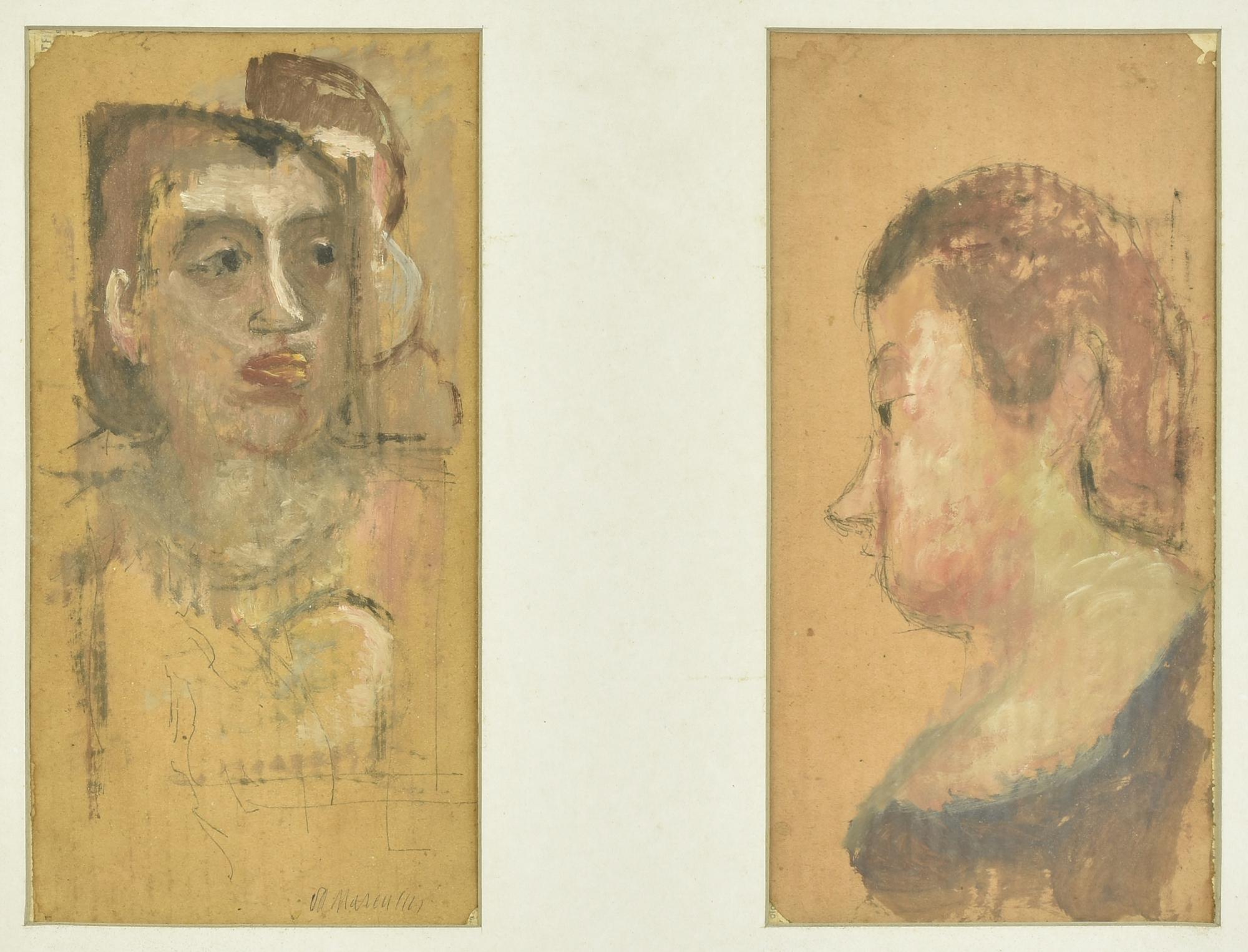 Mario Marcucci VOLTI tecnica mista su carta, montati a dittico, cm 28x14...