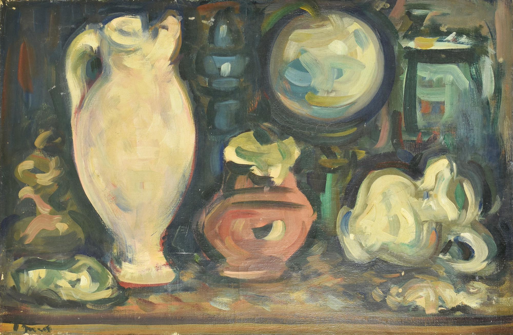 Enzo Pregno NATURA MORTA olio su tela, cm 60x90 firma L'opera presenta alcune...