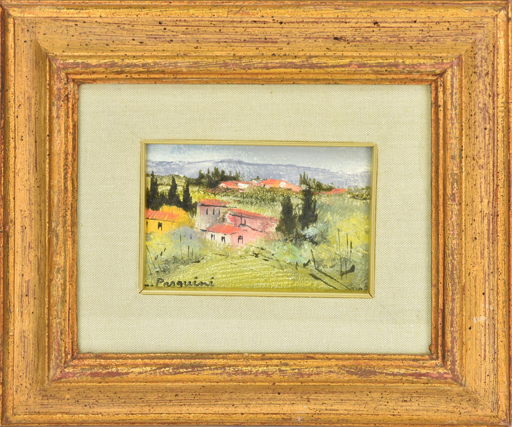 Luciano Pasquini PAESAGGI coppia di olii su tavoletta, cm 10x15 ciascuno sul...