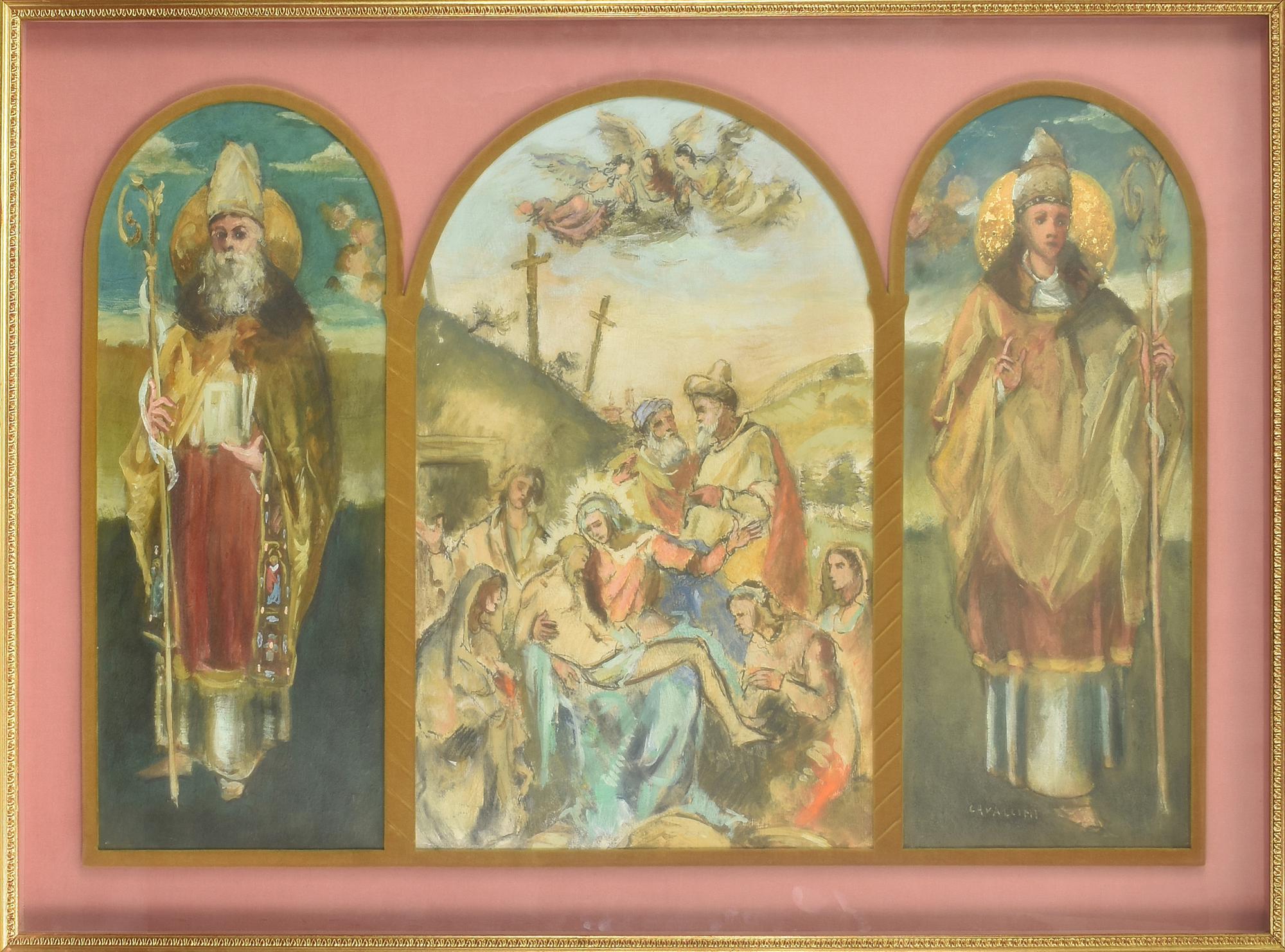Lotto 278 | Attilio Cavallini DEPOSIZIONE trittico composto da tre oli su tavola, cm...