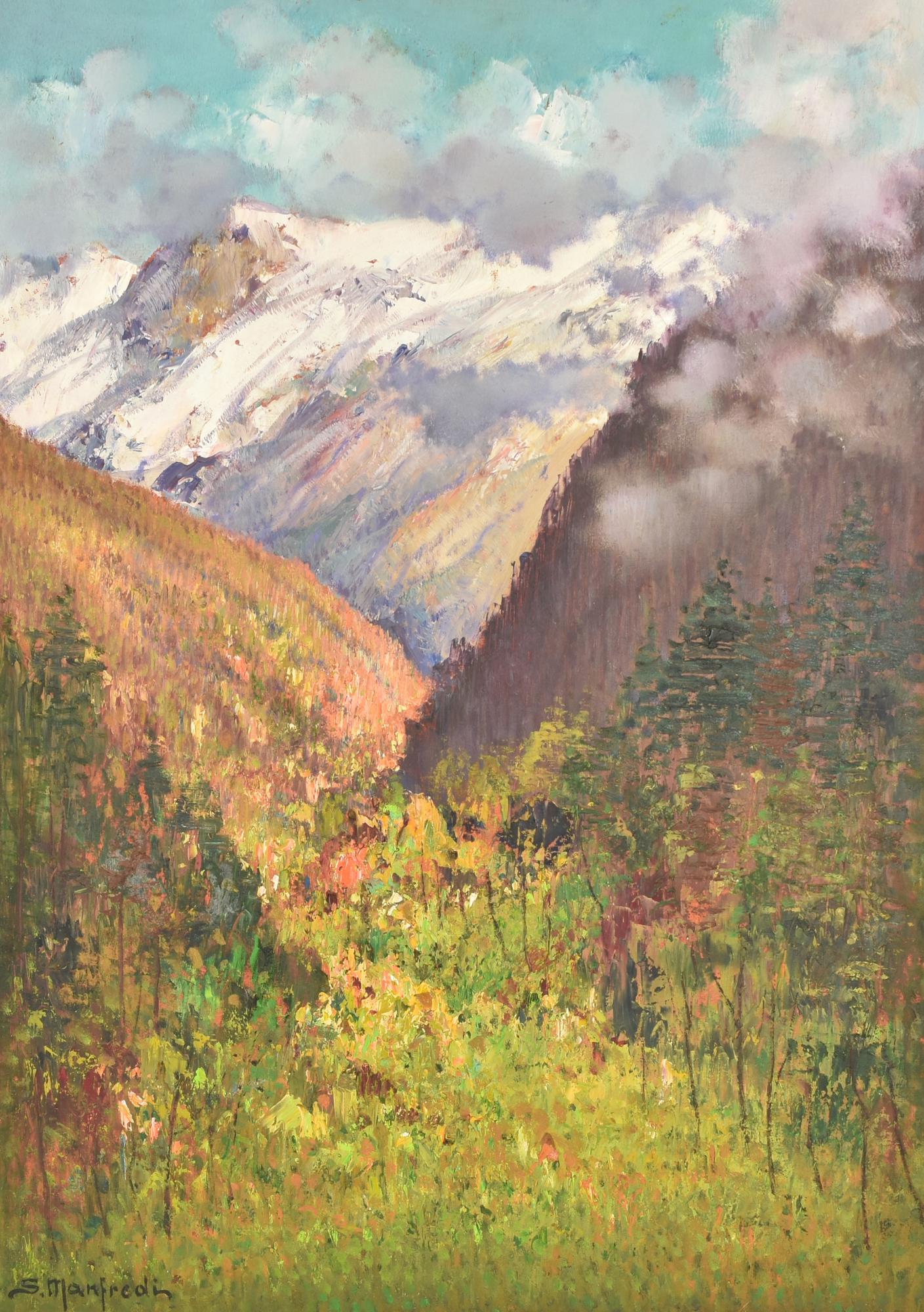 Sergio Manfredi VALLE DI SUSA olio su tela, cm 70x50 firma sul retro: firma e...